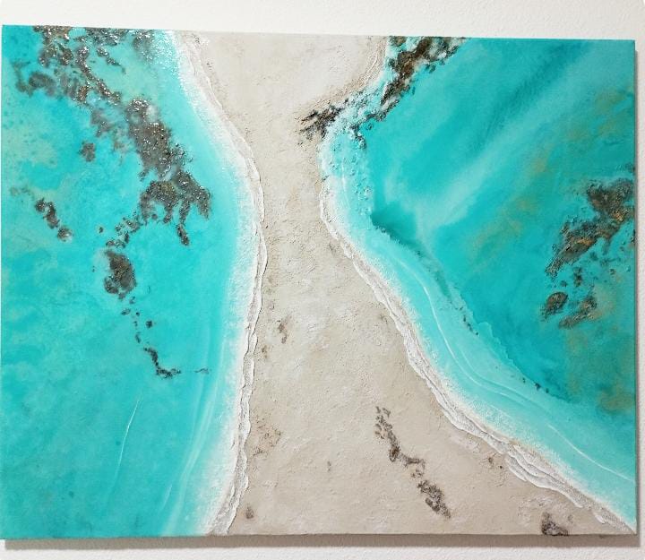 Materiales: Resina epoxi. Obra matérica. Textura rocosa con materiales minerales naturales.